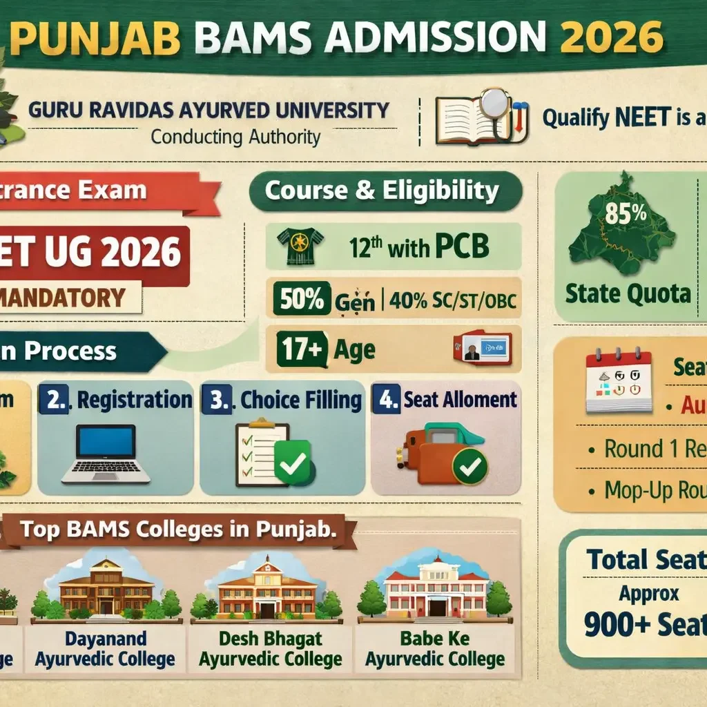 Today we will discuss about Punjab BAMS Direct Admission 2025 .Read this article till end to know whether it is possible to get admission in BAMS with low NEET score or without NEET.