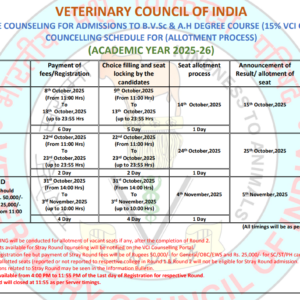 All India Quota Veterinary Counselling Schedule last year